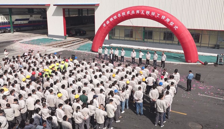 上午10时08分,北院成品库工程竣工投用仪式在北院小广场举行。仪式上,总经理助理赵红军介绍了工程概况,销售公司副经理岳鸿伟作表态发言。随后,李玉田、曹立国、杜玉柱、赵红军、赵晓军为北院成品库工程竣工投用剪彩。